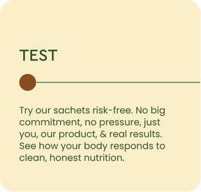 Not ready for the full pack? Start with our single-serve sachets. Same science-backed formula, zero commitment. Perfect for first-timers or anyone who wants to test what works for their body.